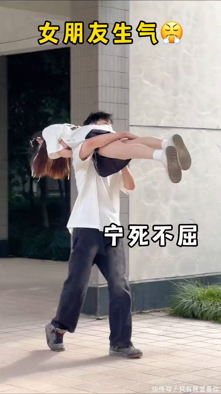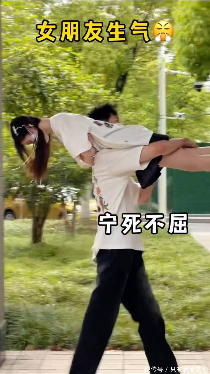 女生和男友赌气杵着不肯动,被男友扛起后依旧宁折不弯,看懵网友